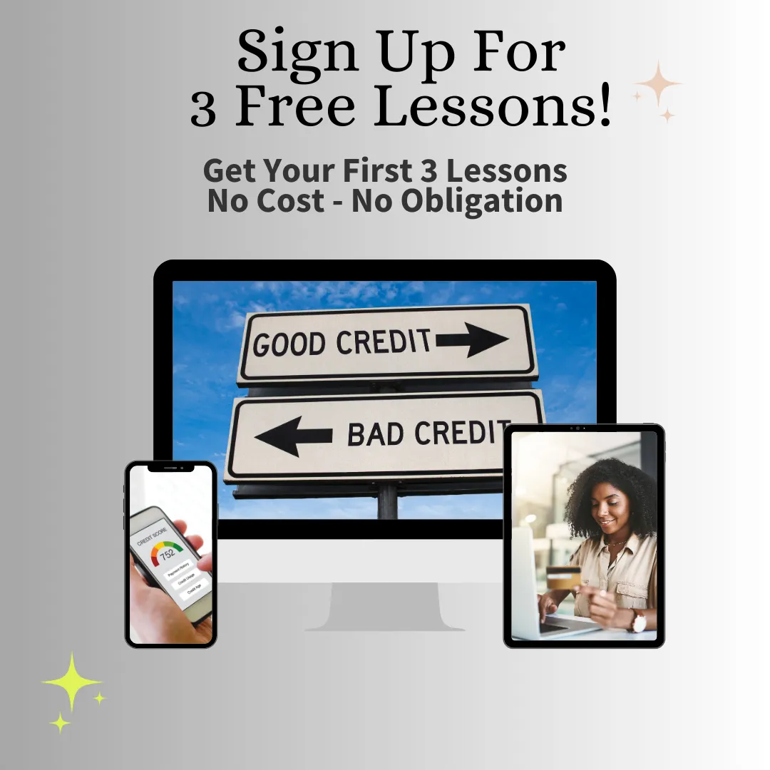 Get started getting rid of the bad debt with your 3 free credit lessons.